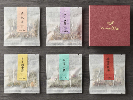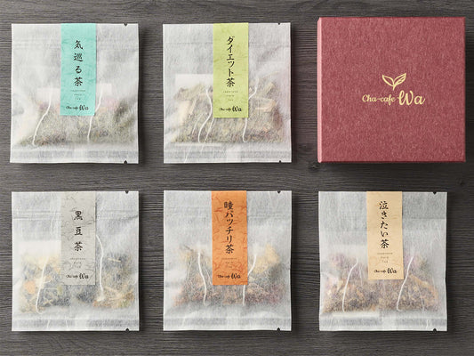 茶カフェ「わ」のオリジナルブレンド漢方茶で、どんな材料が使われているかは、当サイトの「漢方茶の材料をご紹介します」ページ、「漢方茶の材料一覧」ページでご覧いただけます。